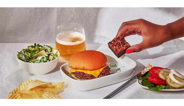 Ya sea la primera vez que usted prueba una hamburguesa de Shake Shack o que sea un cliente habitual, disfrutará de ingredientes de primera calidad en cada bocado. La hamburguesa de queso Shake Shack incluye una hamburguesa de carne Angus 100 por ciento, cubierta con queso y servida en un pan de papa tostado. Puede personalizar su comida con los ingredientes de la clásica ShackBurger: tomate, lechuga y la famosa ShackSauce de Shake Shack, servidos aparte. El platillo también incluye papas fritas, ensalada César y un brownie de chocolate oscuro inspirado en los sabores de Shack Attack, uno de los postres más populares de la marca.