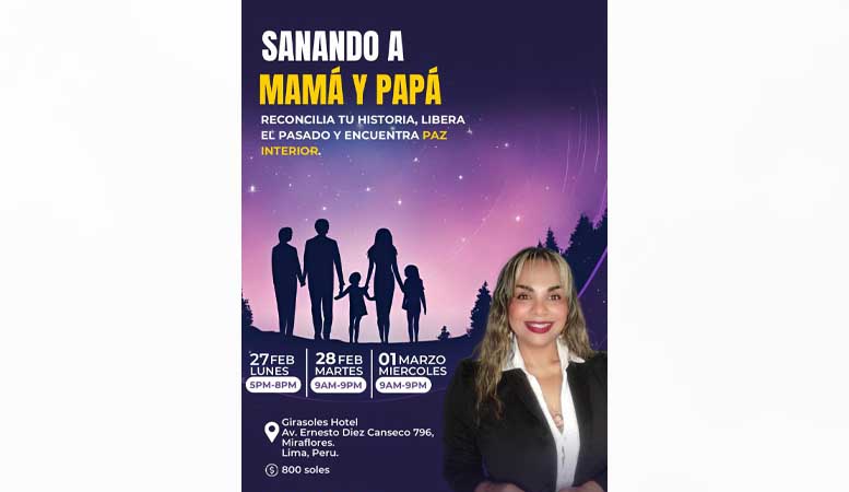 Este Taller de Introspección, lo llevará a cabo la famosa teóloga, coach espiritual y terapeuta emocional colombiana ALEXANDRA SILVA QUIEN LLEGARÁ AL PERÚ, LOS DÍAS 27, 28 FEBRERO Y 01 DE MARZO EN “GIRASOLES HOTEL”, MIRAFLORES. Desde hace más de ocho años, Alexandra Silva, se ha dedicado a acompañar a personas en sus procesos de sanación emocional y transformación personal, con una mirada sistémica que permite reconocer y trascender patrones heredados.