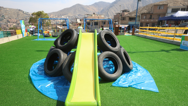 Independencia: inauguran parque infantil con materiales reciclados de llantas