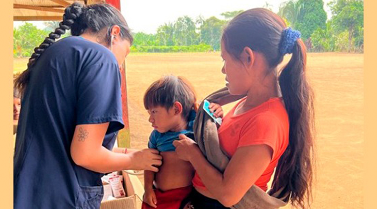 Los profesionales también brindaron atención a las niñas y niños de la zona logrando entregar antiparasitarios, realizar la vacunación contra diferentes enfermedades y la toma de gota gruesa, obteniendo como resultado negativo para malaria.