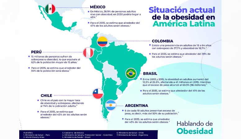 Según expertos en cirugía bariátrica, la situación en la región es alarmante, ya que el 24% de la población adulta vive con obesidad[4]. En países como Perú, Chile y Argentina, el problema es aún mayor, con más de la mitad de las personas con obesidad o sobrepeso. Este panorama subraya la urgencia de estrategias integrales que incluyan prevención, diagnóstico temprano y tratamientos personalizados.