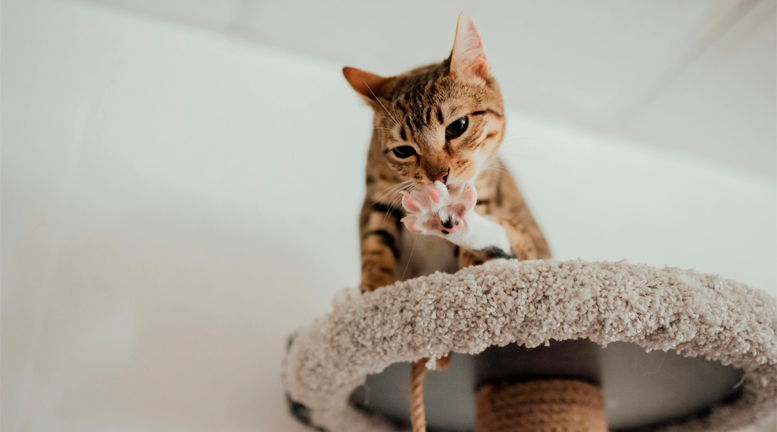 ● Proporciona rascadores: Les permite mantener sus uñas saludables, marcar su territorio y liberar estrés. Además, satisface su instinto natural de arañar, evitando que dañen muebles u otros objetos de la casa.