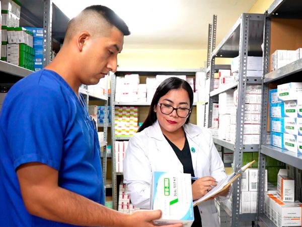 Evelin Betsabe Cosser Huertas, Químico farmacéutico, responsable en Intervenciones Sanitarias y de la Programación de productos estratégicos farmacéuticos y dispositivos médicos en el Hospital Santa Rosa, destacó la eficiencia en el proceso de abastecimiento de medicamentos e insumos médicos por parte de Cenares.