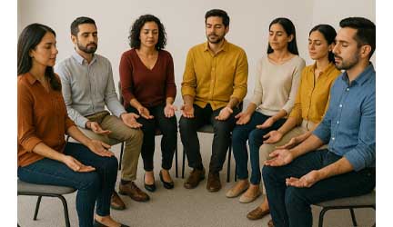 - Círculos de atención plena. Son espacios de encuentro que combinan meditación guiada, reflexión apreciativa y diálogo consciente.