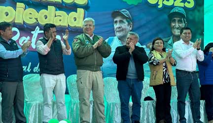 Las autoridades de los tres niveles de Gobierno participaron en la ceremonia de entrega de títulos de propiedad a agricultores de los distritos de Huancaspata y Santiago de Challas, de la provincia de Pataz, así como la entrega simbólica de una transferencia presupuestal para la ejecución de un proyecto en el anexo de Patramarca.