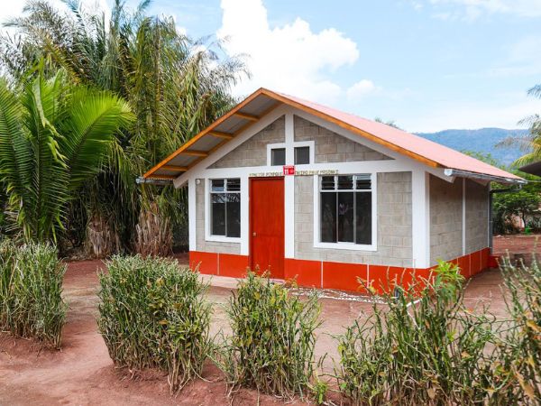 Las viviendas cuentan con un diseño mejorado en bloqueta de concreto, que incluye un espacio social para la familia, un área de uso múltiple y dos dormitorios. Además, la estructura incorpora columnas y vigas de concreto armado, y se implementa preferentemente en comunidades rurales ubicadas entre los 1,000 y 2,000 m.s.n.m.