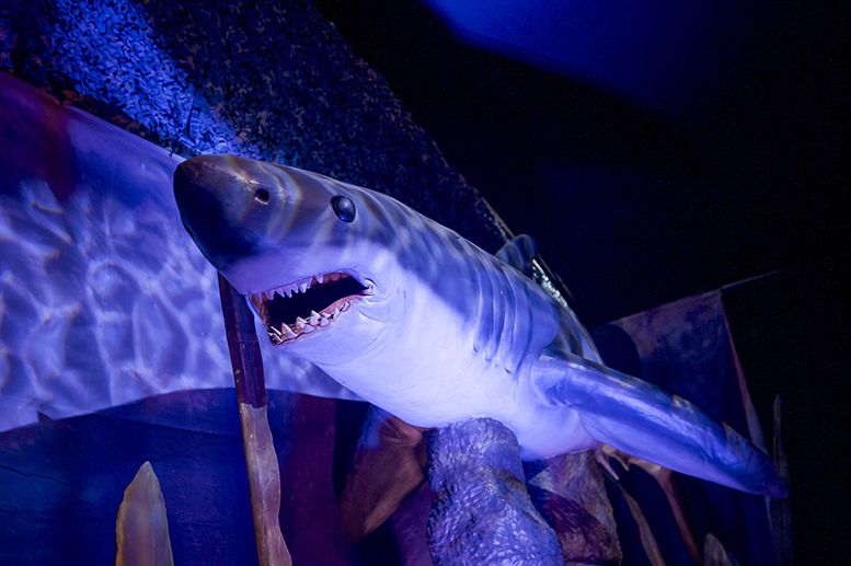 1. Megalodón. El tiburón más grande que haya existido, con más de 18 metros de largo y mandíbulas tan potentes que podrían devorar un automóvil. Su sola presencia impone respeto en la sala central de la muestra.