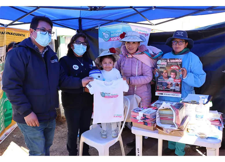 La mejor forma de proteger a los niños menores de 5 años contra el sarampión es con la vacunación que el Ministerio de Salud (Minsa) y la Dirección Regional de Salud (Diresa) Puno ofrecen de manera gratuita en los establecimientos de salud de esta región fronteriza con Bolivia, vecino país donde a la fecha se reportan más de 200 casos.