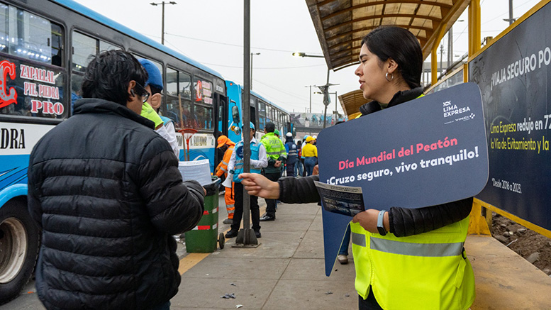 Por el Día Mundial del Peatón, conmemorado cada 17 de agosto, Lima Expresa, subsidiaria de VINCI Highways y concesionaria de la Vía de Evitamiento y la Vía Expresa Línea Amarilla, llevó a cabo una actividad en el paradero Acho de la Vía de Evitamiento que tuvo como objetivo brindar recomendaciones y concientizar a peatones y conductores sobre la importancia de la seguridad vial. La ATU también se sumó a la iniciativa a través de un equipo que sensibilizó a peatones y conductores de transporte público.