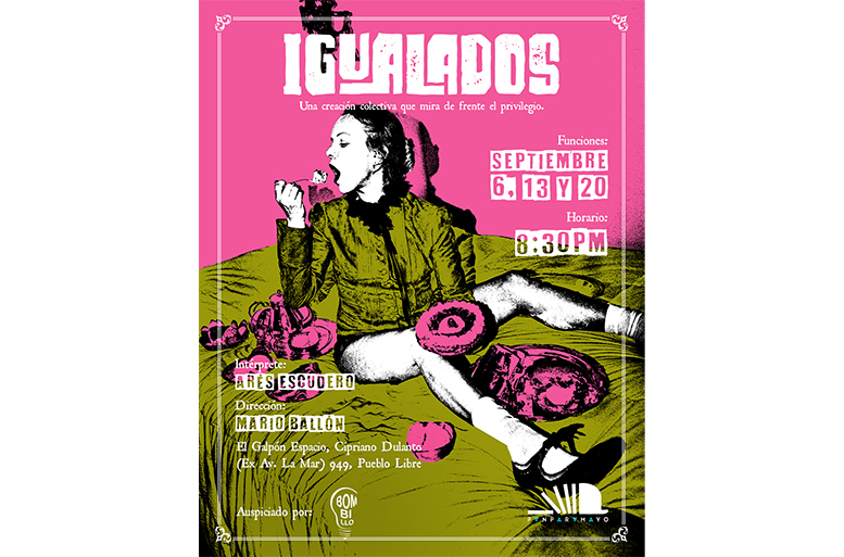 “Igualados busca generar una experiencia colectiva y un pensamiento crítico. A través de acciones que conllevan a la clasificación arbitraria de las personas y la reorganización prejuiciosa de los cuerpos en el espacio, tenemos la intención de incitar reacciones, reflexiones y hasta declaraciones por parte del público”, nos dice el director de la obra Mario Ballón. A través de monólogos que recurren a la biografía de la actriz (Arés Escudero) y de las dinámicas que se realizarán con los asistentes, se pretende abordar en escena la problemática de la división de clases en nuestro país, enfocándose en la posición de superioridad que asumen y que se les concede a personas de la clase alta limeña: “reconociendo el lugar que ocupamos como artistas escénicos de una clase privilegiada, queremos hacer una autocrítica con un tono sarcástico y con humor. Para ridiculizar nuestra pituquería limeña y cuestionar conductas normalizadas. ¿bajo qué criterios le damos valor a las cosas?, ¿a qué llamamos artesanía y a qué arte?, ¿qué es comida gourmet y qué comida popular?”, destaca la bailarina y performer.