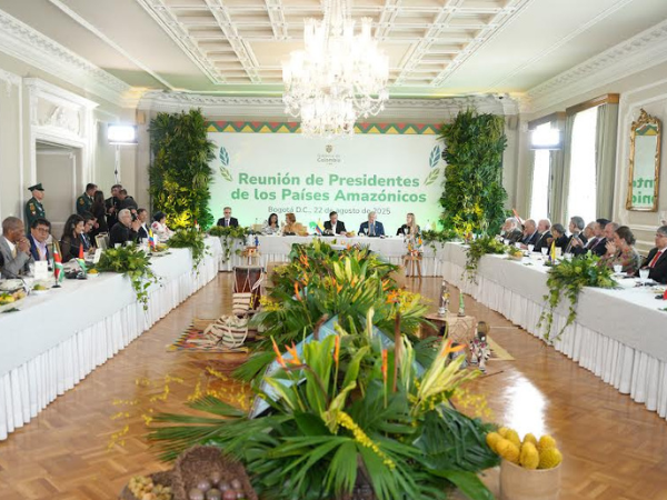 La V Cumbre de Presidentes Amazónicos reunió en Bogotá a los Jefes de Estado de Colombia, Gustavo Petro; Brasil, Luiz Inácio Lula da Silva; Bolivia, Luis Arce; la vicepresidenta de Ecuador, María José Pinto, así como a delegados de Perú, Venezuela, Surinam y Guyana, con el propósito de consolidar acciones de conservación más ambiciosas para esta región vital para la salud del planeta.