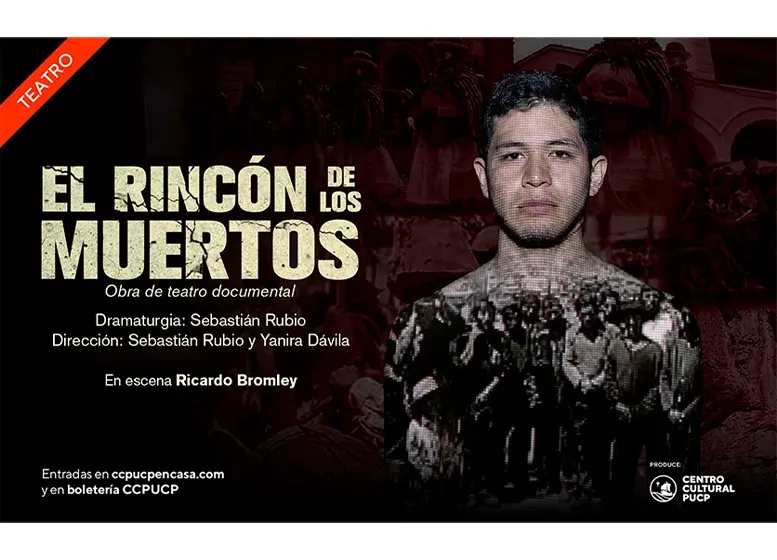 El Centro Cultural de la Pontificia Universidad Católica del Perú presenta “El rincón de los muertos”, escrita por Sebastián Rubio y dirigida por Sebastián Rubio y Yanira Dávila. Una obra de teatro documental que rescata la memoria cultural e histórica de Ayacucho, a través de una exploración escénica profundamente personal de su protagonista: Ricardo Bromley.