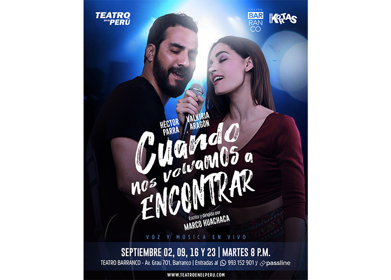 Prepárate a reír, cantar y conmoverte con esta comedia romántica “CUANDO NOS VOLVAMOS A ENCONTRAR” escrita y dirigida por Marco Huachaca, la primera producción de TEATRO EN EL PERÚ para el formato de KORTAS en el TEATRO BARRANCO que se presenta todos los Martes de Setiembre a las 8pm junto a 3 increíbles obras más.