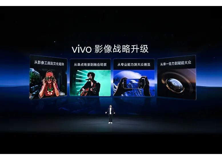 En vídeo, vivo anunció nuevas funciones como cámara lenta 4K multifocal a 120 fps, embellecimiento de retratos 4K, retratos fotográficos en directo y borrado por IA, además de plantillas creativas diseñadas para la generación joven.