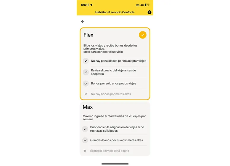 • Libertad total para elegir viajes. “Yango Pro Flex” permite que el conductor elija qué viajes acepta y cuáles no sin penalidades.