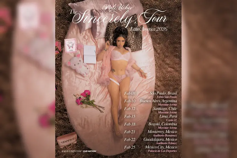 La artista global ganadora del Grammy®, Kali Uchis, anunció la etapa latinoamericana de su esperada gira The Sincerely, Tour. Tras el rotundo éxito de su recorrido por Norteamérica —con 29 shows agotados y más de 300 mil asistentes—, la cantante llevará su ecléctica propuesta musical a Brasil, Argentina, Chile, Perú, Colombia y México. Producida por Live Nation, la gira comenzará el domingo 8 de febrero en São Paulo (Vibra São Paulo) y concluirá con tres noches consecutivas en México, finalizando el miércoles 25 de febrero en el Palacio de los Deportes de Ciudad de México.