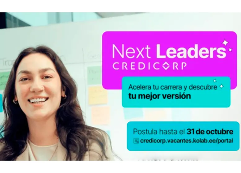 Lima.- Credicorp, principal holding financiero del Perú con presencia en Chile, Colombia, Bolivia, Panamá, Estados Unidos y México, presentó Next Leaders, un nuevo programa de desarrollo dirigido a jóvenes talentos con alto potencial que desean iniciar su carrera profesional en el sector financiero. La convocatoria estará abierta hasta el 31 de octubre, y los interesados podrán postular a través de la web de convocatoria (https://credicorp.vacantes.kolab.ee/portal). «En Credicorp estamos convencidos de que a través del talento joven podemos impulsar el desarrollo y transformar la industria. Bajo ese concepto nace nuestro programa…