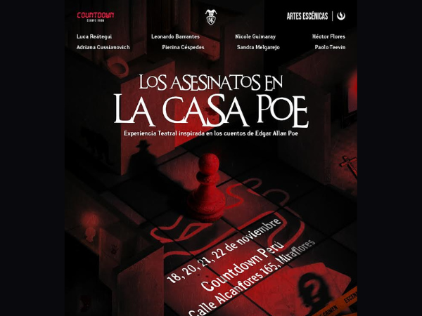 Nimatrik producciones presentará la corta temporada de Los asesinatos en la Casa Poe, experiencia escénica inmersiva dirigida por Mario Gaviria. La propuesta escénica se estrenará el martes 18 de noviembre a las 6:30 p.m. en Countdown (Miraflores). En la enigmática Casa Poe se ocultaron durante años los rastros de una serie de asesinatos atroces. Los principales sospechosos: los seis hermanos Usher, una familia tan extraña como perturbadora. Tras nuevas revelaciones se confirma que dos de ellos son culpables, aunque cada uno actuó con un método distinto. Ante este hallazgo los…