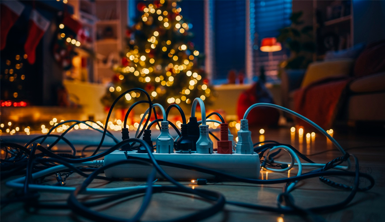 - Desconecta equipos que no uses: apaga luces y decoraciones al cierre del día. Esto reduce los llamados “consumos fantasma” y el sobrecalentamiento de los tomacorrientes.