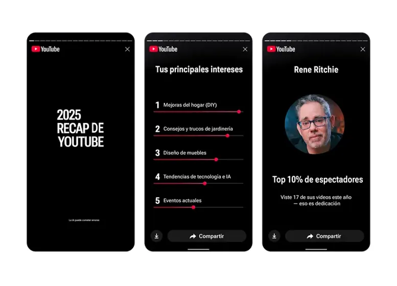 Recap estará disponible a partir de hoy para los usuarios de YouTube en Norteamérica y se lanzará en el resto del mundo esta semana. Tu Recap se encuentra en la página principal o en la pestaña “Tú”, a la que puedes acceder desde dispositivos móviles y computadoras.