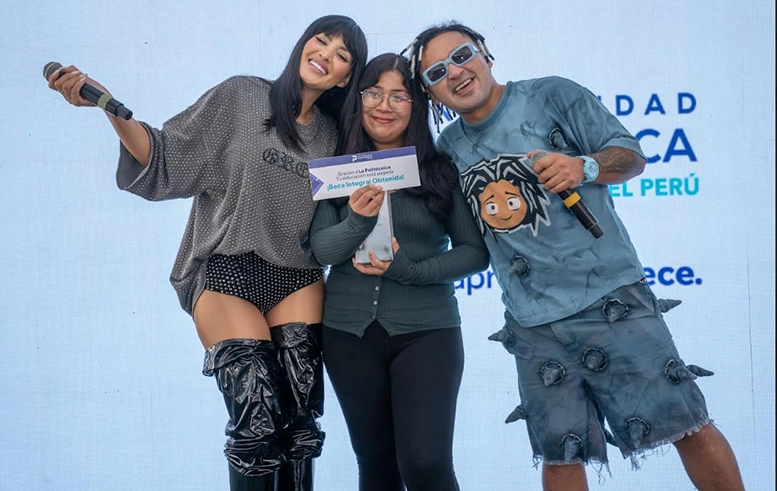 Lima – Michelle Soifer y Zumba cambiaron los reflectores por las aulas y se sumaron al Open Campus de la Universidad Politécnica del Perú, donde vivieron de cerca lo que muchos ya llaman el modelo de la educación del futuro. Entre risas, selfies y preguntas espontáneas, ambos conocieron el sistema de aulas híbridas, que permite que estudiantes presenciales y virtuales interactúen en tiempo real gracias a pantallas interactivas, cámaras inteligentes y audio de alta definición.