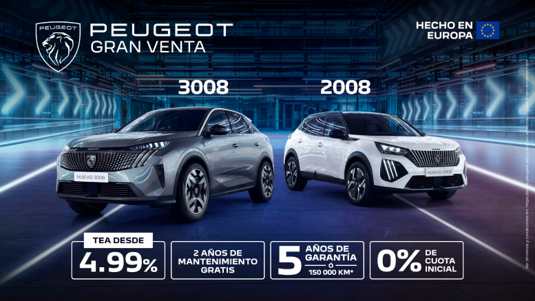 Peugeot Perú lanza su campaña “Gran Venta” desde 0% de cuota inicial y 2 años de mantenimiento Gratis para sus SUVs 2008 y 3008