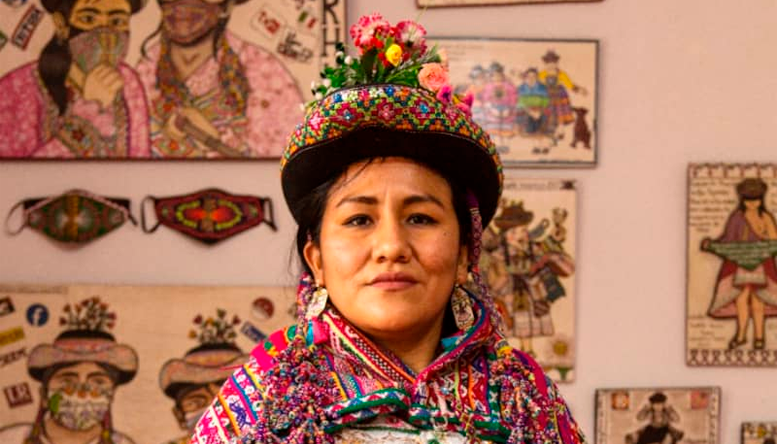 Violeta Quispe Yupari, es una artista visual peruana cuya práctica articula pintura, tabla tradicional de Sarhua, instalación y performance como dispositivos de memoria y resistencia. Su trabajo explora las relaciones entre arte contemporáneo y saberes andinos, abordando temas como identidad, género e historia. Ha participado en importantes espacios internacionales como la Bienal de Venecia (2024) y ARCOmadrid, y su obra forma parte de destacadas colecciones en América y Europa.